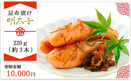 当店の昆布漬け明太子が福岡市の「ふるさと納税」の返礼品としてお求めいただけます。(※ふるさと納税に関する詳しい説明は下記総務省のサイトよりご確認ください)